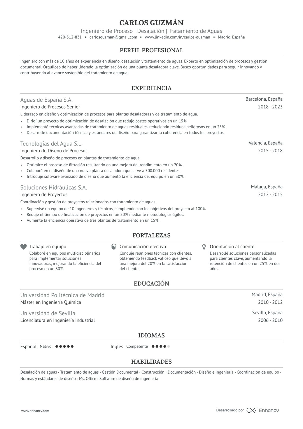 - “Reduje los costes operativos en un 15 % mediante la optimización del proceso de desalación.”